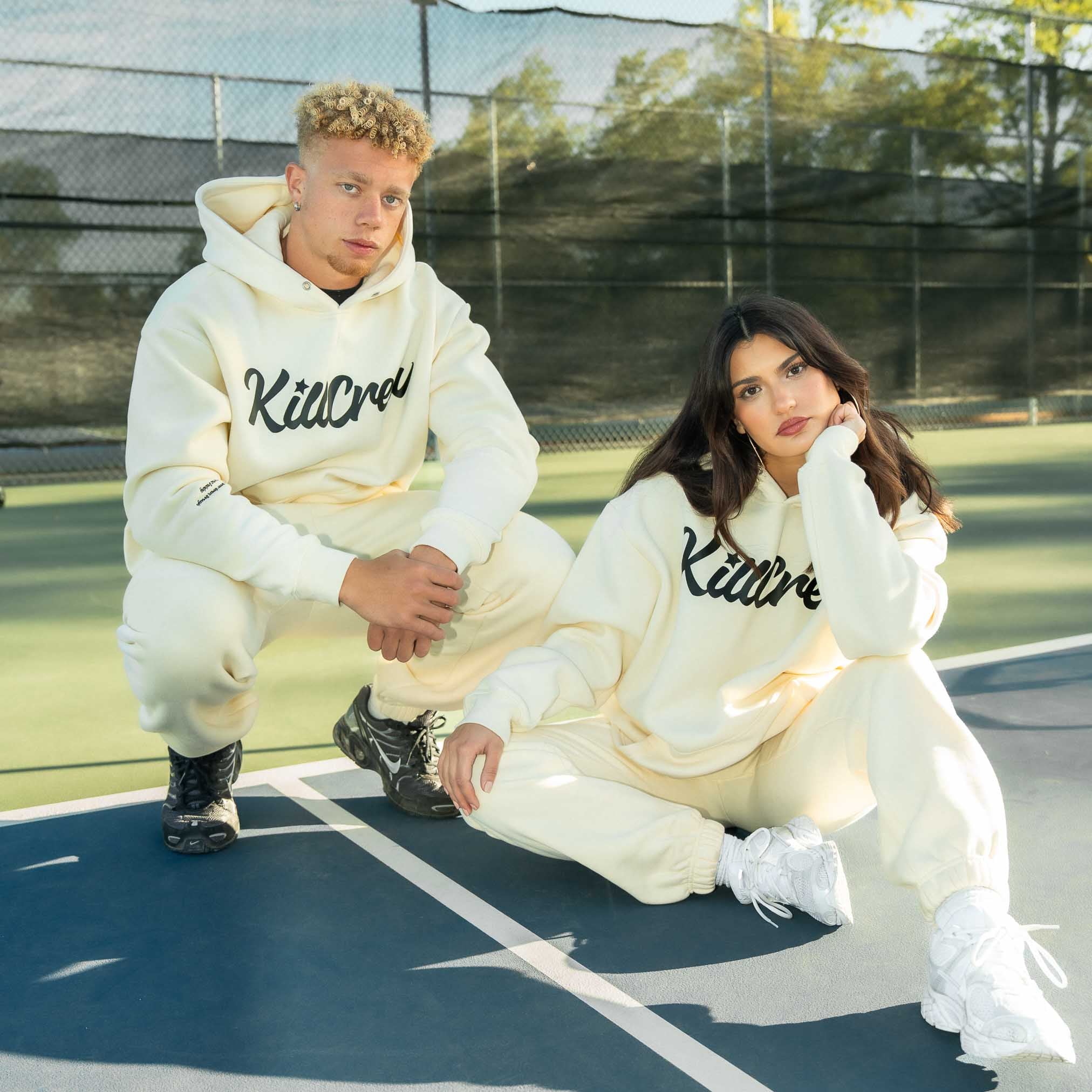 OVERSIZED LUX "SCRIPT" HOODIE - CREAM / BLACK